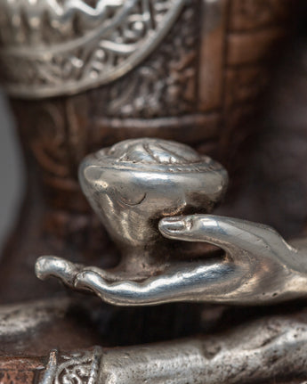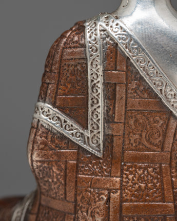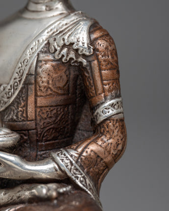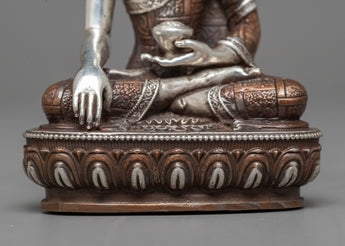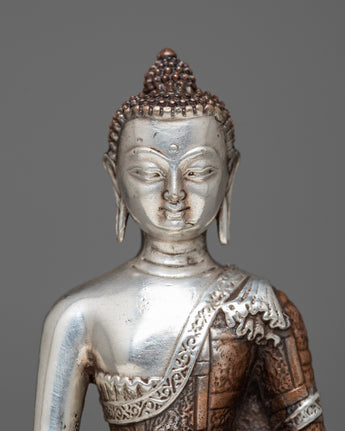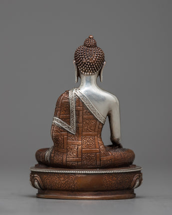 Lord Machine Made Shakyamuni Buddha Statue with Oxidized Copper and Silver Plated