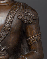 Oxidized Copper Medicine Buddha Bhaisajyaguru Statue | Healing Meditation and Tibetan Decor
