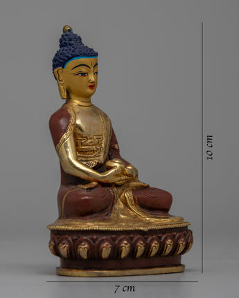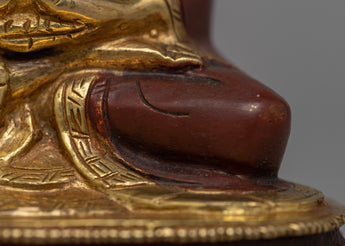 Discover the grace and tranquility of our exquisitely crafted handmade Amitabha Buddha sculpture, which is made of copper. The magnificent sculpture depicts Amitabha Buddha, a highly esteemed figure in Buddhist traditions. Its meticulously gold-gilded face and partial 24k gold plating add to its spiritual significance and visual appeal.