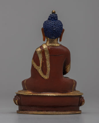 This sculpture would look great as the focal point of a collection of spiritual artifacts or as an addition to any altar or meditation area. In addition to being aesthetically pleasing, its combination of copper and gold symbolizes the holiness of Amitabha Buddha. This handcrafted sculpture is important for both practitioners and art collectors because it reminds us of the way to spiritual awakening and inner peace.
