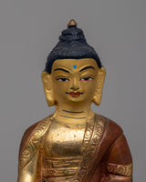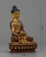With our 10cm Meditative Ratnasambhava Buddh Statue, which is painstakingly handcrafted on a copper body, you can experience the very essence of peace. The statue's spiritual and aesthetic appeal is enhanced by partial 24k gold plating, with special attention paid to the gold gilding on the face.