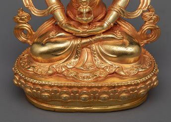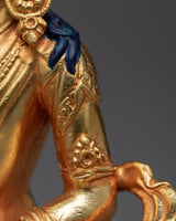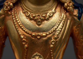 Experience Amitayus' limitless blessings, elegantly fashioned into a tiny yet profoundly resonant mini statue. The minute intricacies of this deity of infinite life are created flawlessly using precise machine molding processes. This statue reflects the energy of Amitayus' unending vitality, with a copper core encased in brilliant 24K gold and embellished with skillfully applied acrylic paintings.