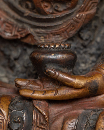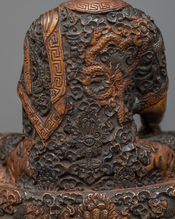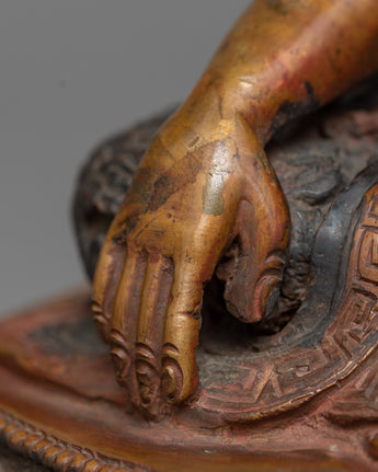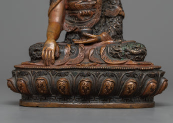 The statue's copper body is skillfully handcrafted and subjected to a unique oxidation process, giving it an antique and timeless appearance. This oxidized finish not only improves the statue's aesthetics but also highlights the intricate details, capturing the depth and simplicity of Buddha's teachings.