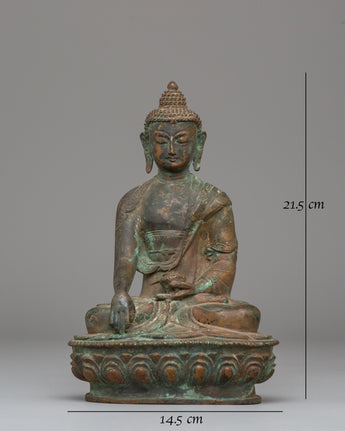 This Peaceful Shakyamuni Buddha Statue stands at 21.5 cm in height, with a base width of 14.5 cm. Made from copper, which enhances its durable and sacred feel. The careful craftsmanship brings out the Buddha's serene and peaceful expression, symbolizing wisdom and enlightenment.