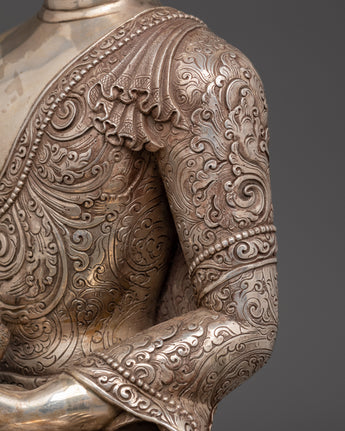 Pure Silver Shakyamuni Buddha Statue | Handcrafted Spiritual Decor