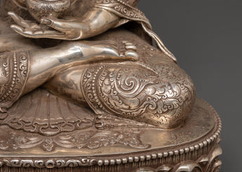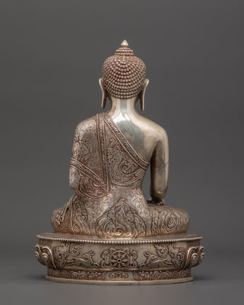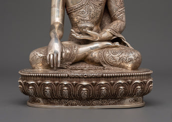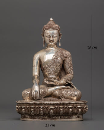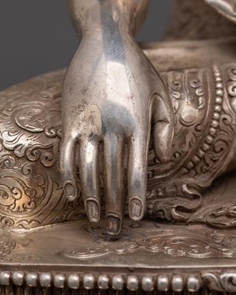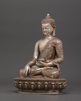 Pure Silver Shakyamuni Buddha Statue | Handcrafted Spiritual Decor | Tibetan Buddhist Art