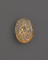 This finely carved Ratnasambhava Amber statue is 4 cm tall and 3 cm wide, with a weight of only 0.004 kilogram. This one-of-a-kind artwork, crafted from amber, represents Ratnasambhava, the Buddha of Generosity and one of the five Dhyani Buddhas in Tibetan Buddhism. The sculpture depicts Ratnasambhava in a tranquil, meditative stance, reflecting prosperity, knowledge, and charity in spiritual forms.