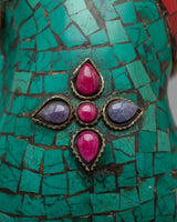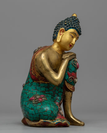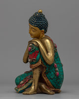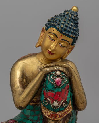Introducing the exquisite Resting Buddha Statue, a true work of art handcrafted from pure brass and adorned with vibrant turquoise, coral, and blue lapis accents. Standing gracefully at a height of 20cm, this statue embodies a profound sense of tranquility and inner peace.