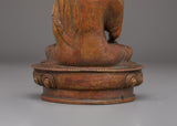 This statue portrays Shakyamuni Buddha in a traditional seated position, his right hand raised in a gesture of Dharma, symbolizing the Buddha's sacred teachings. The intricate details of the statue highlight the Buddha's calm expression, with delicate features and robes that showcase the skillful craftsmanship typical of Tibetan Buddhist art. The antique finish adds a sense of authenticity, making it a timeless addition to any collection.