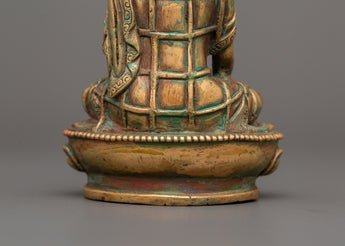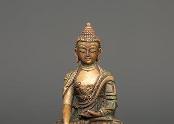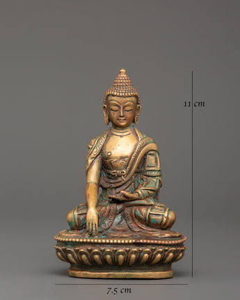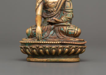 This sacred statue, created with great craftsmanship, features precise engraving and traditional iconography, making it an ideal addition to meditation rooms, personal altars, and Buddhist shrines. The gold-plated accents emphasize its celestial beauty, while the oxidized copper finish provides an antique feel, representing spiritual depth and devotion. This Shakyamuni Buddha statue is a strong reminder of inner calm, balance, and enlightenment, making it ideal for Dharma practice, meditation, or a memorable spiritual gift.