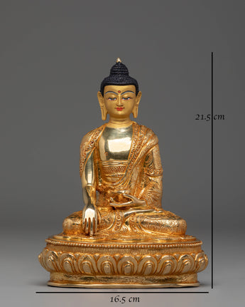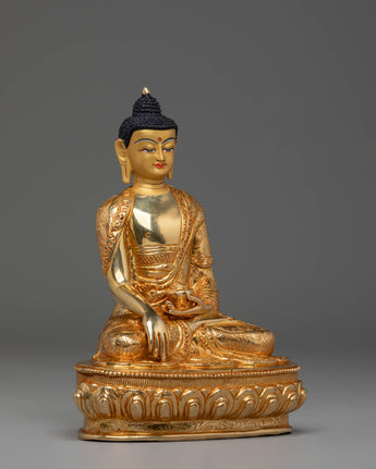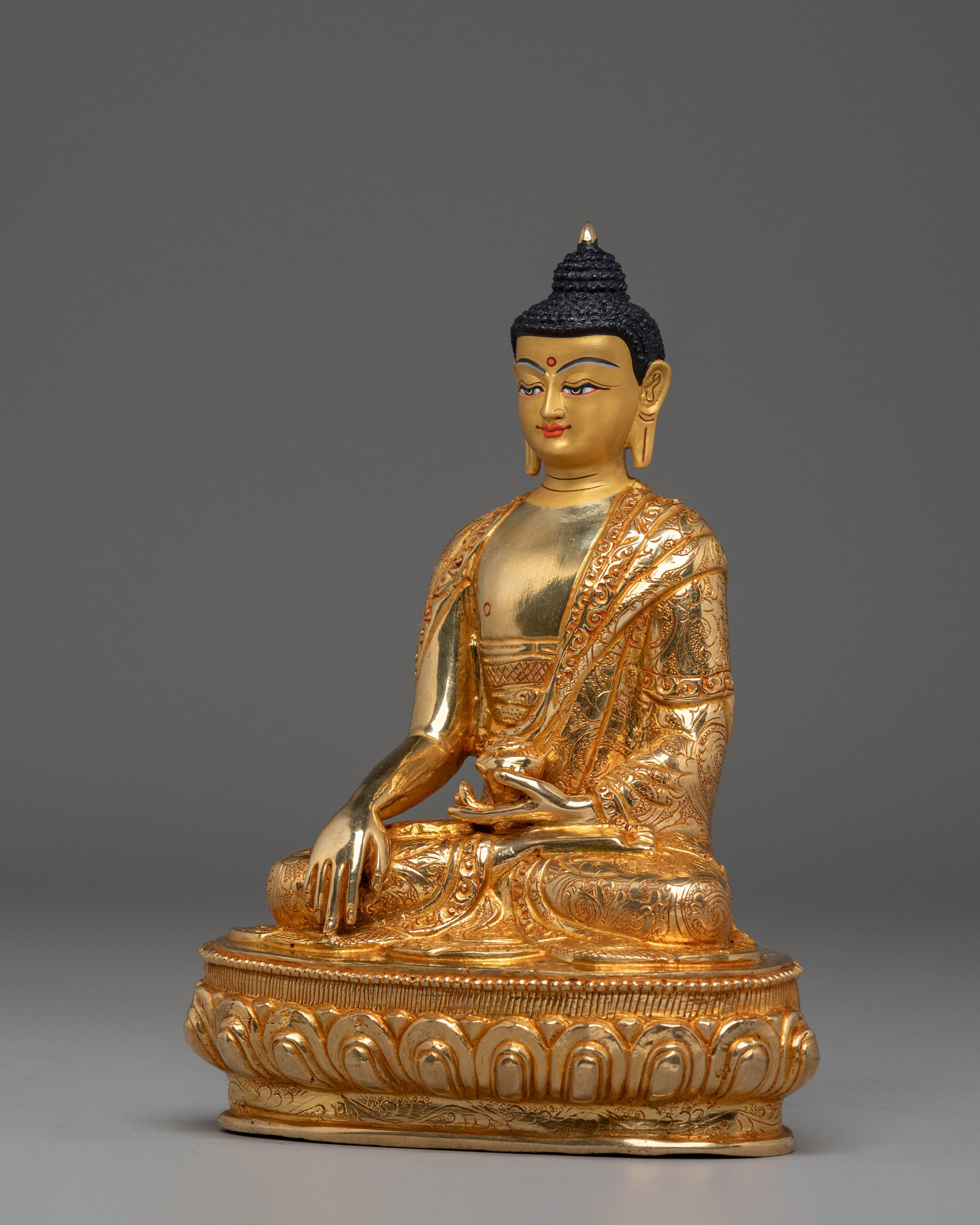 Shakyamuni Buddha Handmade Sacred Statue | Gold Plated Copper Figurine