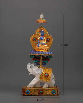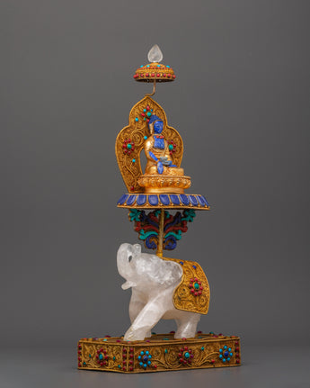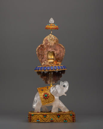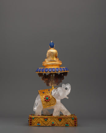 Shakyamuni Buddha on Crystal Elephant - Spiritual Altar Art