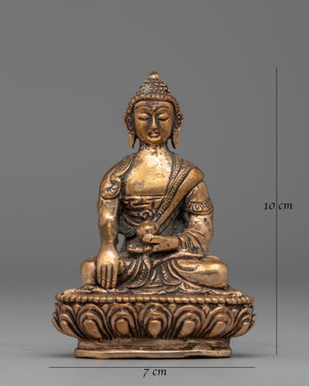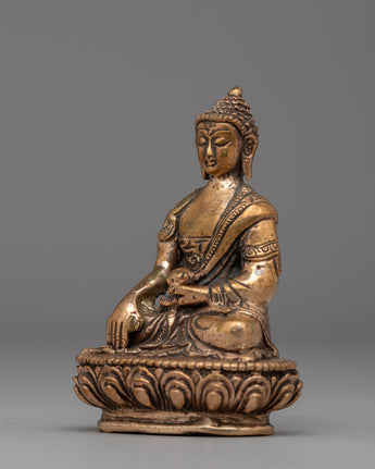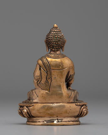 Shakyamuni Buddha Sculpture in Gold-Plated Copper | Ideal for Meditation & Home Altar