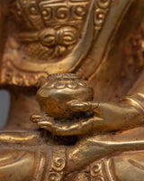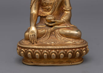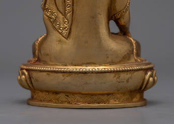 Introducing the Shakyamuni Buddha Small-16cm Statue, a beautifully sculpted image of the historical Buddha intended to instill calm and serenity in small places. Standing at 6.3 inches tall with a 4.1-inch base, this statue is ideal for personal meditation settings or as a quiet addition to your desk or shelf. Crafted from copper and finely polished with Gold Electroplated, it displays realistic acrylic paintings of Buddha's serene features and typical attire.