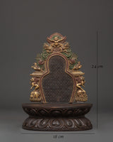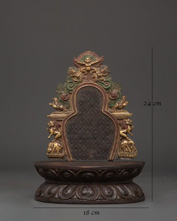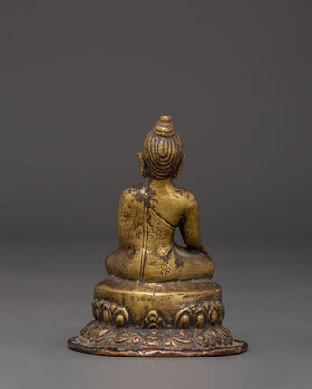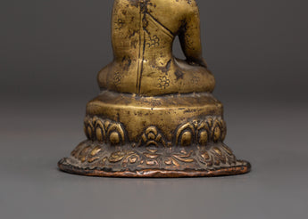 Shakyamuni Buddha, the historical Buddha, embodies enlightenment, compassion, and the path to liberation. In a serene sitting position, his right hand touches the earth in the Bhumisparsha Mudra, signifying his triumph over negativity and the achievement of enlightenment beneath the Bodhi tree. The throne is adorned with mythological lion patterns and fortunate symbols, representing the Buddha's royal ancestry and spiritual authority. The intricate designs and religious themes showcase the skill and dedication of Himalayan craftsmen, elevating it from a mere decorative piece to a profound spiritual symbol.