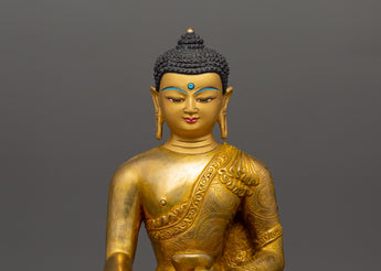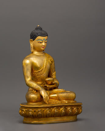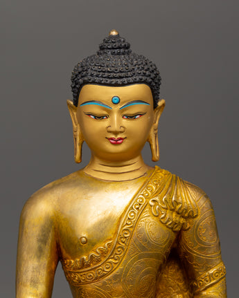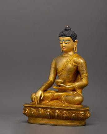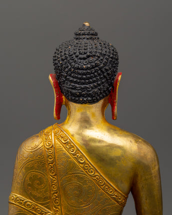 Shakyamuni Buddha Statue | Symbol of Enlightenment | Gold-Plated Oxidized Copper Dharma Figurine
