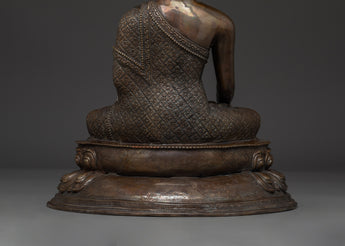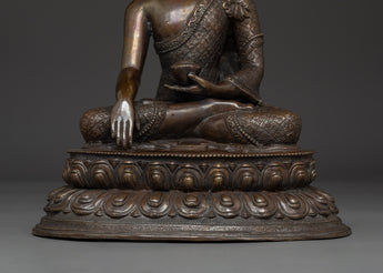 The details on this Shakyamuni Buddha statue exemplify traditional Tibetan craftsmanship, with each feature painstakingly carved to highlight the Buddha's serene look and magnificent position. The rich, oxidized copper finish has an ancient appeal, adding to its aesthetic value and symbolic significance. Whether displayed on an altar, in a meditation room, or as a centerpiece in your home decor, this statue is a continual reminder of spiritual awakening and mindfulness. The elaborately crafted lotus pedestal emphasizes its religious presence, making it a wonderful gift for anybody on a spiritual journey.