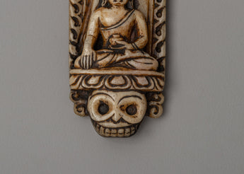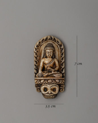 This 7cm tall and 3.5cm wide Shakyamuni Buddha Wall Decor Statue is expertly carved from ethically obtained buffalo bone, a material that is both long-lasting and symbolic of respect for life. This statue's small dimensions and careful finishing make it an ideal addition to any spiritual area or meditation shrine. Ethically Sourced Buffalo bone is crucial in Buddhist culture, representing a link to the land and acknowledging the cycle of life and death. This Shakyamuni Buddha statue is a valuable spiritual tool for instilling serenity and mindfulness in your home or place of worship.