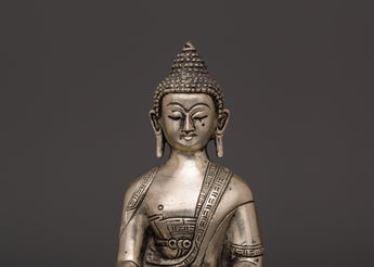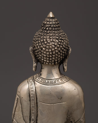 Silver-Plated Shakyamuni Buddha Statue - Buddhist Decor & Spiritual Serenity