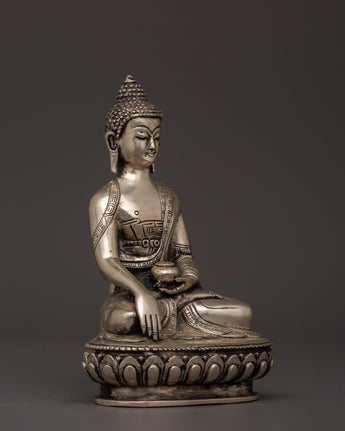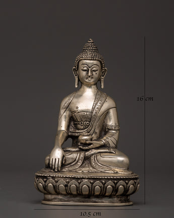 Silver-Plated Shakyamuni Buddha Statue | Buddhist Decor & Spiritual Serenity