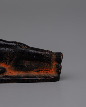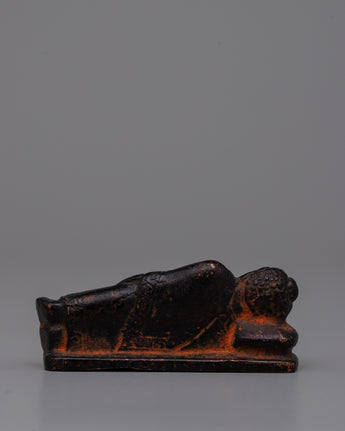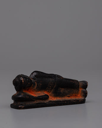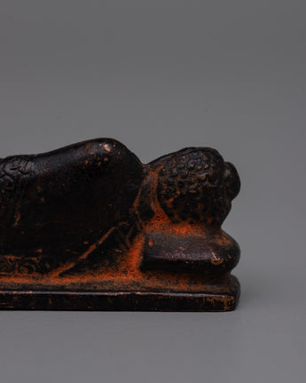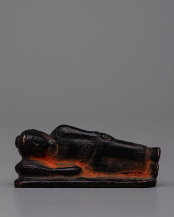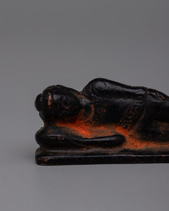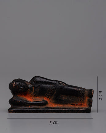 Presenting our magnificent Sleeping Buddha sculpture, painstakingly fashioned from copper to evoke the tranquil spirit of the reclined Buddha. Despite its small size—just 2 cm in height and 5 cm in width—this little masterpiece perfectly captures the serenity and spiritual significance of the Sleeping Buddha stance.