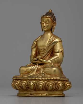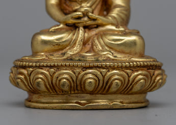 Presenting our Spiritual Amitabha Buddha Statue, a painstakingly crafted 9.5cm tall sculpture. This statue was made with a copper body and then exquisitely plated in 24k gold to heighten its hallowed presence. Amitabha Buddha is portrayed with a calm and introspective expression. In Buddhist traditions, he is associated with compassion and longevity.