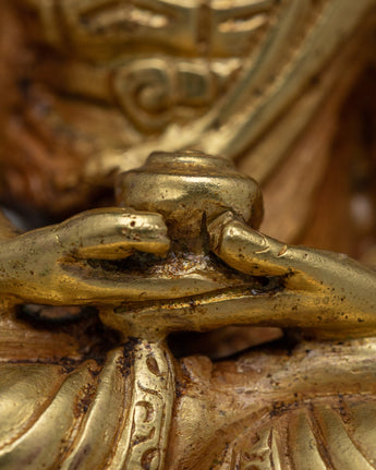 Because of the superb craftsmanship, this statue is both a work of art and a spiritual symbol, perfectly capturing the serene grace of Amitabha Buddha. The Buddha's features and robes are accentuated with a layer of elegance and reverence thanks to the 24k gold plating. The statue is made to be both aesthetically pleasing and have spiritual significance thanks to this painstaking process.