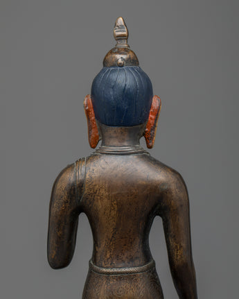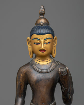 Gold & Acrylic on Oxidized Bronze : A True Nepalese Gem "Standing Shakyamuni Buddha Figurine"