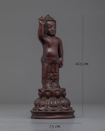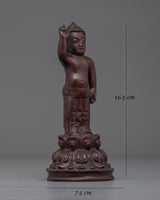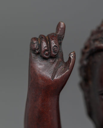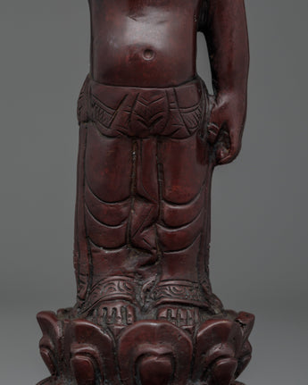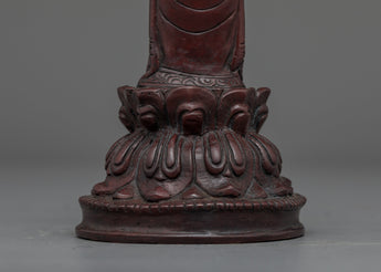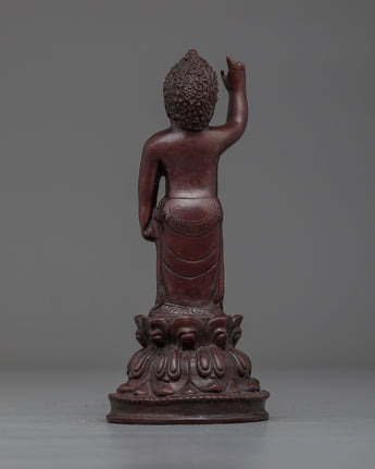 Introducing our Standing Buddha Small Handmade statue, skillfully carved in Patan, Nepal, from high-quality oxidized copper. This artwork, which features the Standing Buddha in a serene, poised stance that represents serenity and enlightenment, is a perfect example of Nepalese metalwork. Intricate details and a peaceful expression highlight great artisan ability, and the oxidized finish gives everlasting spiritual depth.