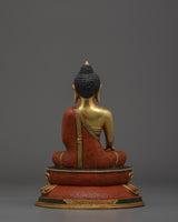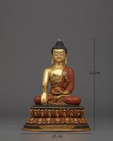 This finely crafted Shakyamuni Buddha statue stands 23 cm tall and measures 18 cm in width, making it perfectly sized for personal altars and sacred spaces. Weighing 2.17 kg, its copper body offers intricate detail, honoring traditional Himalayan artistry. Gilded with gold, the statue radiates a holy glow that enhances its serene presence. The skillful use of acrylic colors accentuates a peaceful expression, inviting calm and spiritual grounding. This exquisite piece embodies the wisdom and compassion of the Enlightened One, making it a meaningful addition to any meditation or devotional practice.