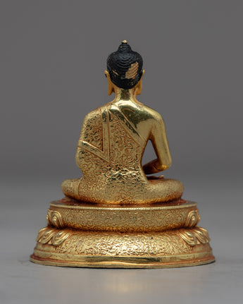 With the Tiny Amitabha Buddha statue, a modern monument to the perfect integration of technology and spirituality, you can enter a state of tranquility and spiritual fulfillment. The machine-molded miniature portrayal captures the spirit of the Amitabha Buddha with perfect detail, symbolizing an oasis of peace in its gold-gilded copper framework.