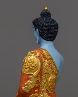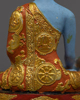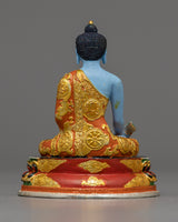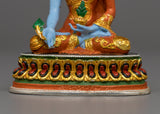 Medicine Buddha is referred to as the Buddha of Healing and is also known as Bhaishajyaguru in Sanskrit. His teachings stress the desire to amass wealth and pleasure in this life while also working to relieve sentient beings from disease, pain, suffering, and misery. His healing prowess is admired by many Mahayana meditators. He is typically shown with a begging bowl and medicinal herbs while having a blue (lapis lazuli) body.