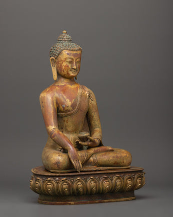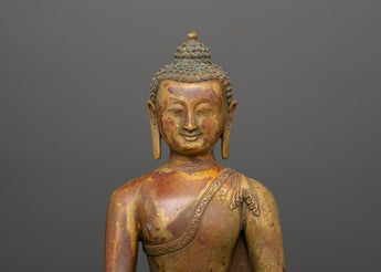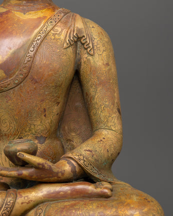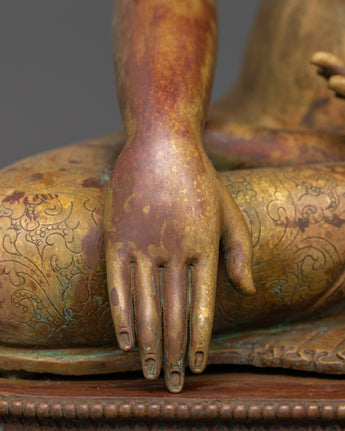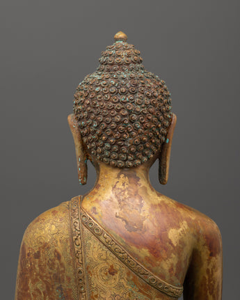 Tranquil Shakyamuni Buddha in Bhumisparsha Mudra | Gold-Plated Copper