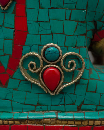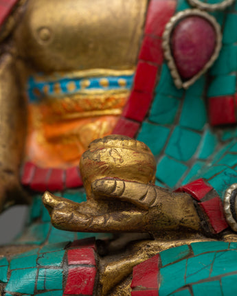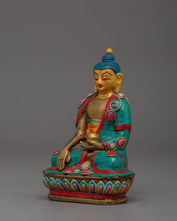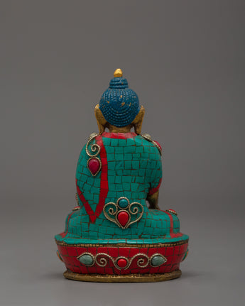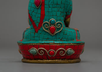 Tranquil Shakyamuni Buddha Statue with Turquoise & Coral