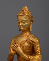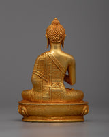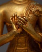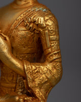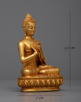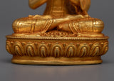 The Vairocana Buddha Machine-Made Statue is a stunning example of spiritual enlightenment and universal knowledge. This statue, which is meticulously crafted on a copper body and embellished with exquisite 24k gold plating, exudes a profound sense of peace and enlightenment. Standing at 9.5cm tall, it captures the essence of Vairocana Buddha, the embodiment of the Dharmakaya, or "truth body," and the major figure in the Mahayana Buddhist tradition.