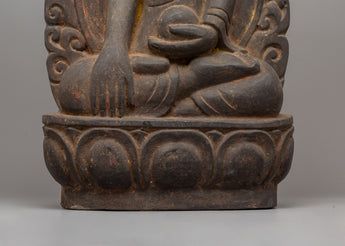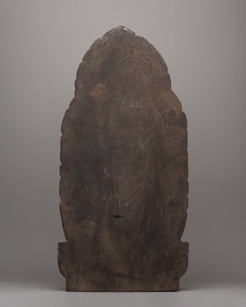 Crafted with skill from wood, this 2.62-kilogram statue exhibits exquisite details, from the Buddha's calm face to the elaborate lotus base and halo. This artwork is a timeless addition to any artistic or spiritual collection with its hand-carved workmanship and natural wood tones. It is a stunning addition to your sacred area and a attention symbol.
