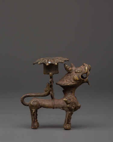 Bronze Lion Candle Holder for Hindu Rituals | Handcrafted Oil Lamp$840.00$672.00 /Save 20%