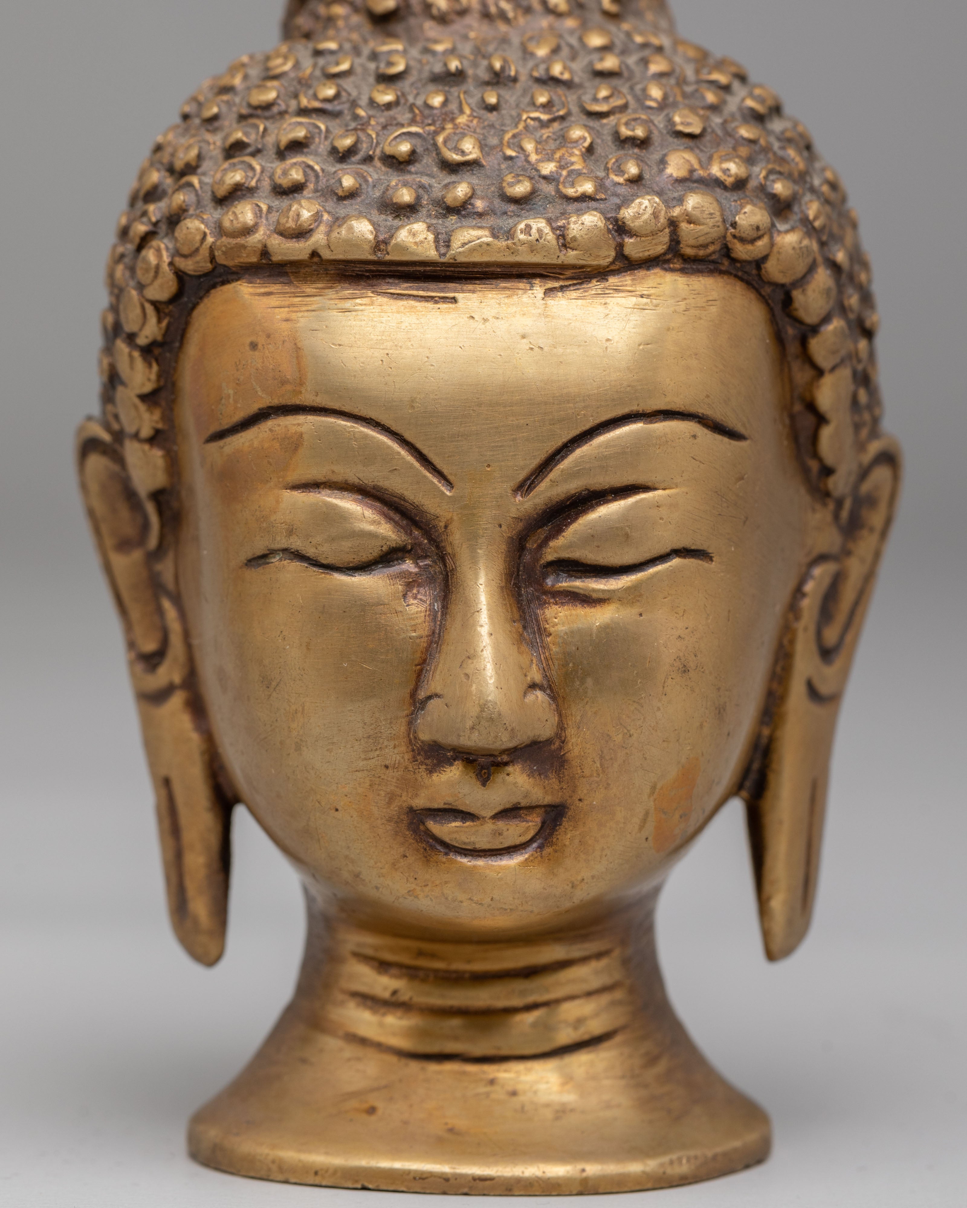 Handcrafted Buddha Head Statue | Brass Sculpture for Meditation and Peace
