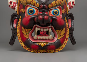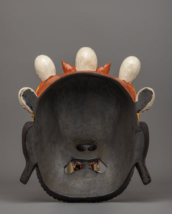 Crafted with detailed detail from high-quality wood, this mask depicts Bhairav's bold and dominating demeanor. It functions as both a spiritual instrument and a work of art, attracting the tremendous forces of protection, transformation, and strength. Placing this mask in your holy place will protect your surroundings and enhance your spiritual practices, invoking positive transformation and boosting your rituals.