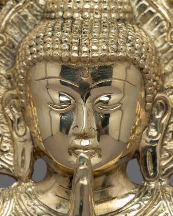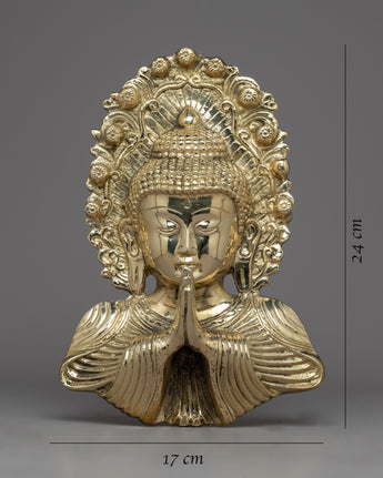 The Buddha Head Statue Large, with its brass body, radiates serenity and spirituality. At 24cm tall, it's an exquisite wall hanging.