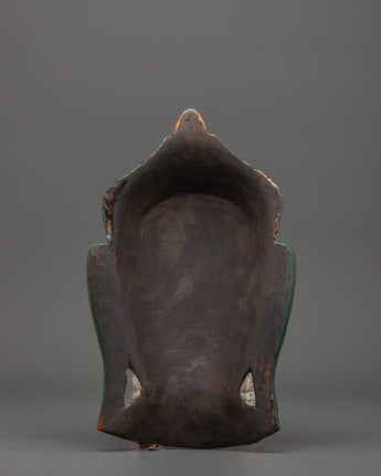This mask, whether put in a holy area of your house or used as a decorative piece in a meditation room, exudes tranquil energy. This mask's well crafted features and vibrant colors make it a significant addition to any area, bringing positive energy and peace. It also makes a great present for people looking to improve their spiritual practice or home design.