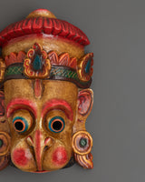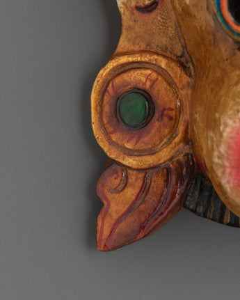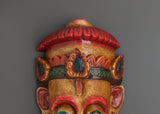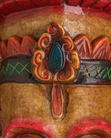 Transform the spiritual vibe of your home or meditation area with this compelling Colorful Wall Hanging. Expertly handcrafted by Himalayan artisans, this wooden mask measures 33cm in height and 20.5cm in width, serving as more than just decorative art. It embodies protection, divine energy, and inner strength. Made from wood and finished with vibrant acrylic paints, it repels negative energy while bringing grounding and protective qualities to your space. Perfect for doorways, altars, or yoga rooms, it acts as a spiritual guardian that balances energy flow.