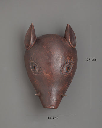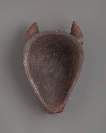 Wooden decor tribal mask, a stunning example of traditional craftsmanship. This wonderfully crafted wooden mask, 23 cm high and 14 cm wide, adds depth, cultural history, and artistic expression to any situation.