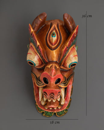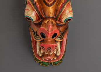 Dragon Head Mask | Tibetan Wooden Wall Decor