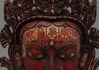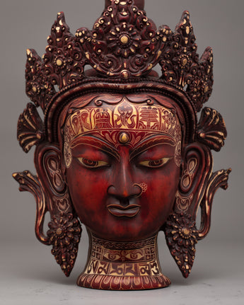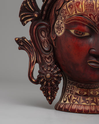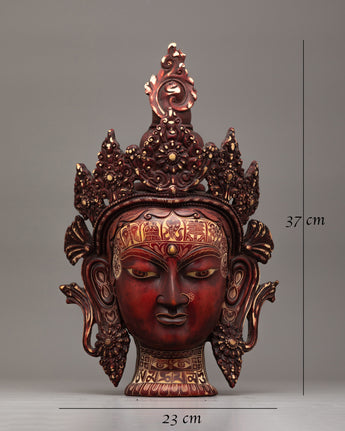 With our magnificent Buddha Fiber Mask, you may completely lose yourself in the tranquility of Buddhist meditation. This 37cm-tall mask, which is expertly fashioned by hand from sturdy fiber, is a dramatic focal point for any meditation area or ornamental display. Inspired by the profound teachings of the Buddha, this mask's every detail emanates knowledge and tranquillity, providing a concrete representation of enlightenment and inner serenity.