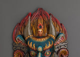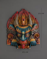 Infuse your home with sacred protection and divine energy through this Fierce Expression Wall Mask, a traditional piece rooted in Himalayan culture. Expertly handcrafted from wood and richly painted with acrylic colors, this 32.5cm tall guardian mask radiates a commanding spiritual presence. In Tibetan and Buddhist traditions, such masks are placed at entrances or meditation areas to repel negative forces and invite auspicious energies. Measuring 26.5cm wide and weighing 0.84kg, it perfectly balances artistic beauty with spiritual purpose.