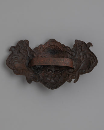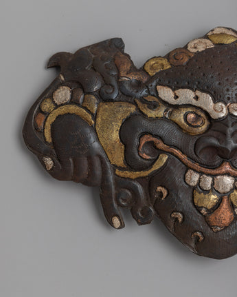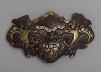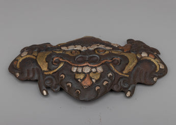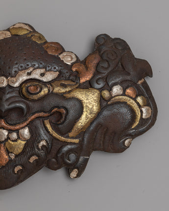 A painstaking process is involved in creating this Garuda face, combining the timeless strength of iron with the soft sheen of silver, the richness of brass, and the warmth of copper. This exquisitely crafted combination of metals beautifully captures the minute details of Garuda's ferocious yet sage face. Bring a bit of ancient mythology into your home with exquisite craftsmanship that is reminiscent of centuries-old Tibetan artistic tradition.