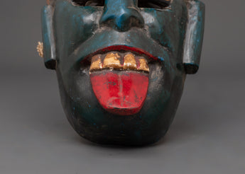Crafted from wood and adorned with vibrant acrylic colors, this mask is not just an artistic representation but also a spiritual artifact. Kali, renowned for her role in conquering evil and overcoming obstacles, is believed to provide protection and promote positive transformation for her devotees. This distinctive wall hanging serves as a powerful reminder of divine strength and is perfect for home decor, meditation spaces, or as a meaningful gift.