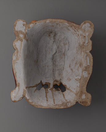 With this beautiful Mahakala Mask Wall Decor, you can bring Mahakala's powerful protective and spiritual energy into your house. This wall hanging is handcrafted from wood and coated with acrylic colors, capturing the sacred essence of one of Tibetan Buddhism's most powerful protector deities. This incredibly detailed mask, measuring 31cm in height and 27cm in width, features expressive eyes, symbolic flames, and intricate carvings, making it a great centerpiece for spiritual, ethnic, or Himalayan-themed interiors.