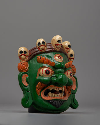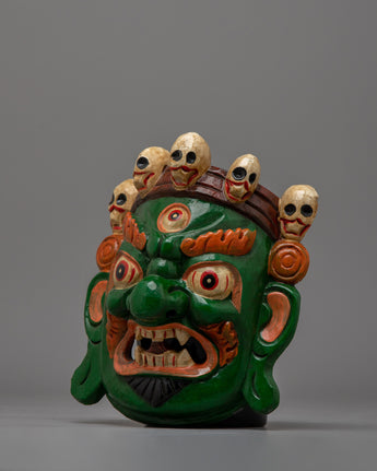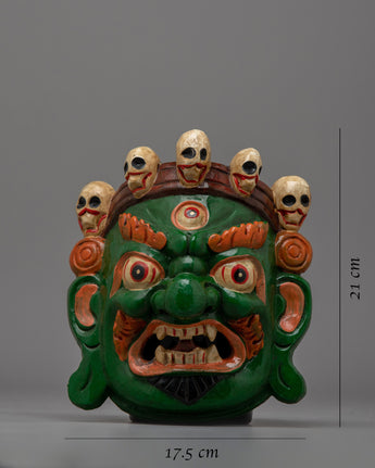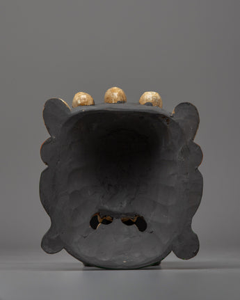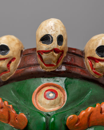 The dynamic and breathtaking features of Mahakala are brought to life in the Nepal Mahakala Mask by the artisan's talent and attention to detail in every acrylic paint stroke. This mask is a potent representation of spiritual strength and protection that can be used in ceremonial ceremonies, shrine displays, or meditation areas. The Nepal Mahakala Mask inspires reverence, spiritual transformation, and devotion by providing a tangible link between devotees and the holy through its exquisite craftsmanship and sacred symbolism.